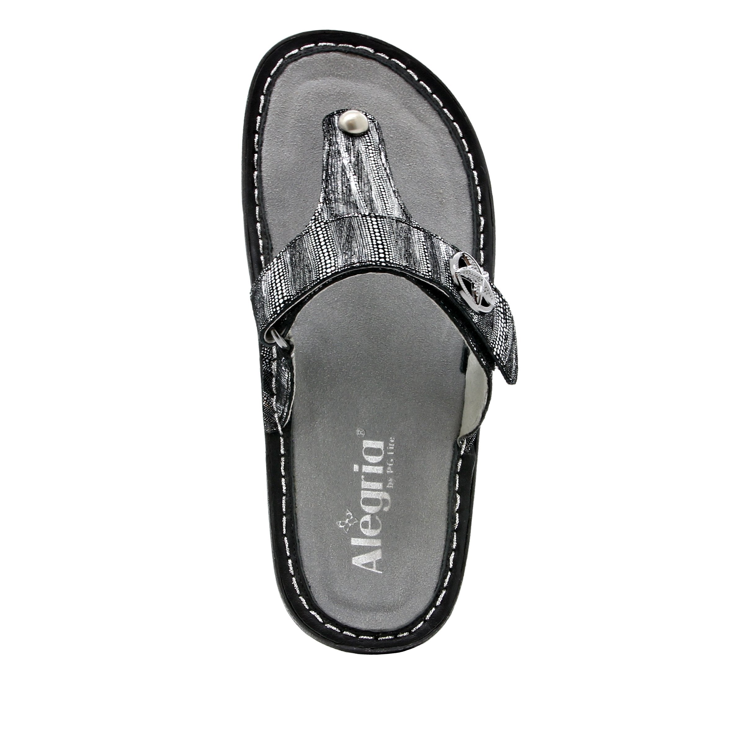 Featured in metallic printed Circulate suede leather, the stunning hardware is the cherry on top of this flip-flop sandal.