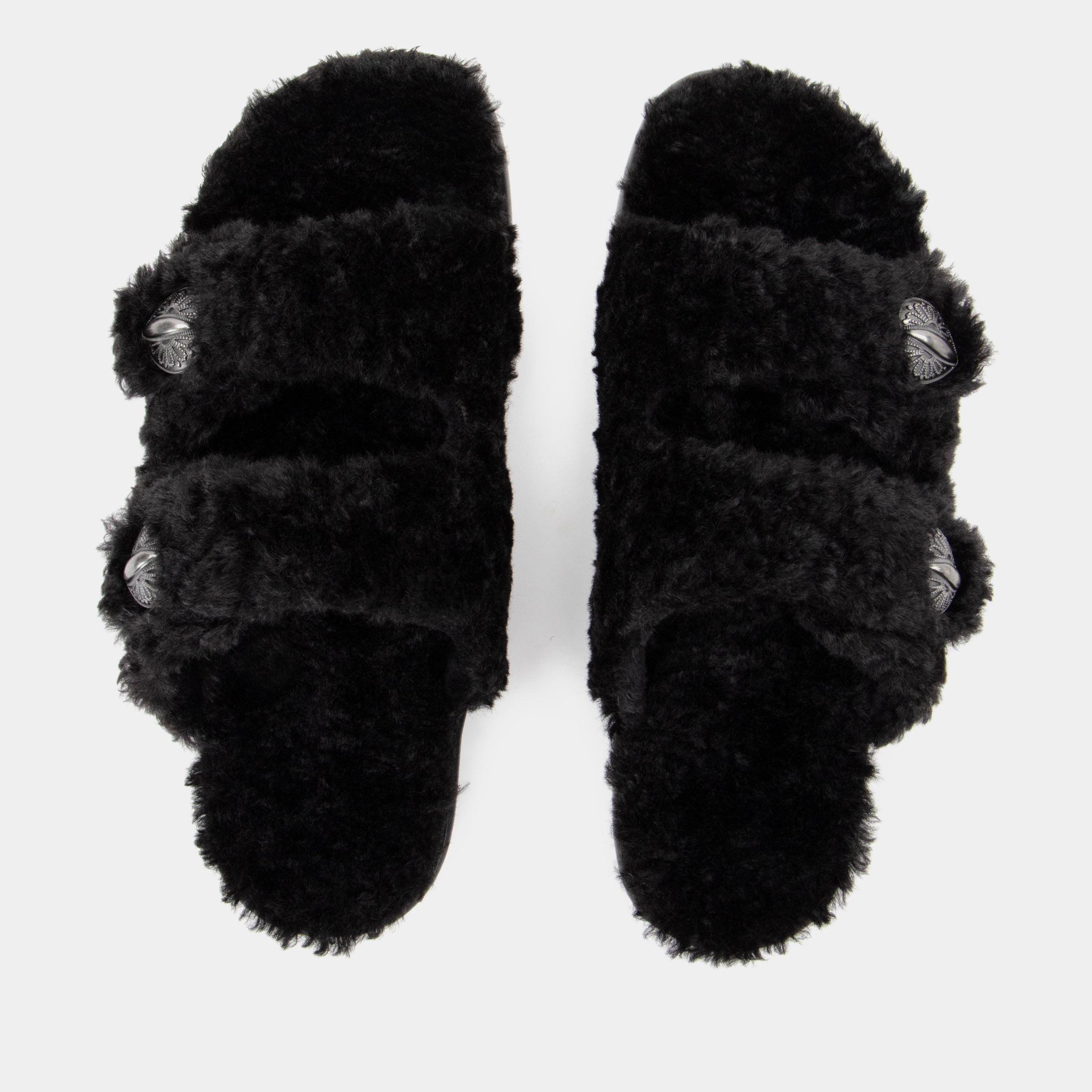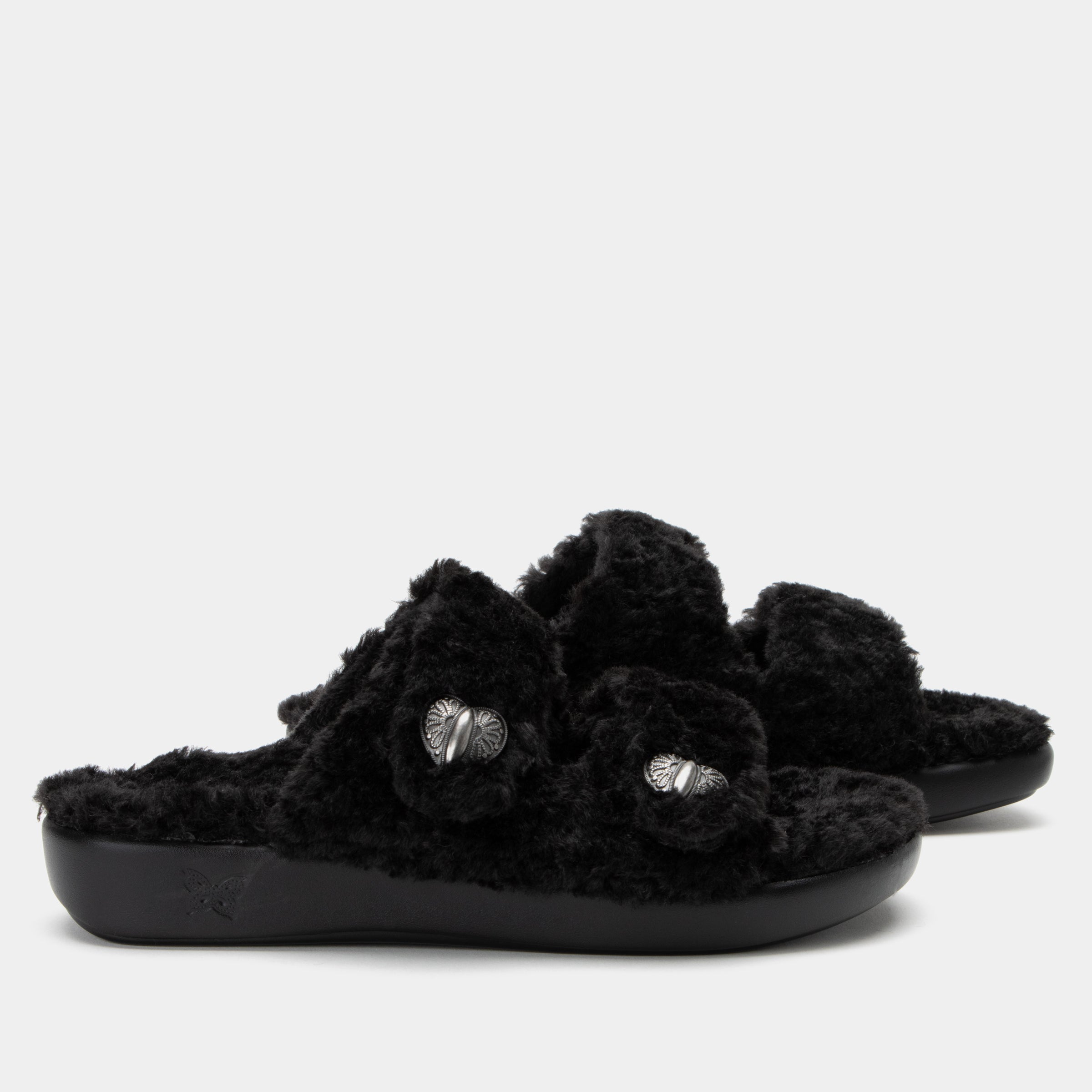 Chillery is a comfort slipper that is the most versatile with two hook-and-loop straps to give your foot a more customized fit. A plush sherpa upper, featured in Onyx, is adorned with decorative heart hardware for a quaint finishing touch.