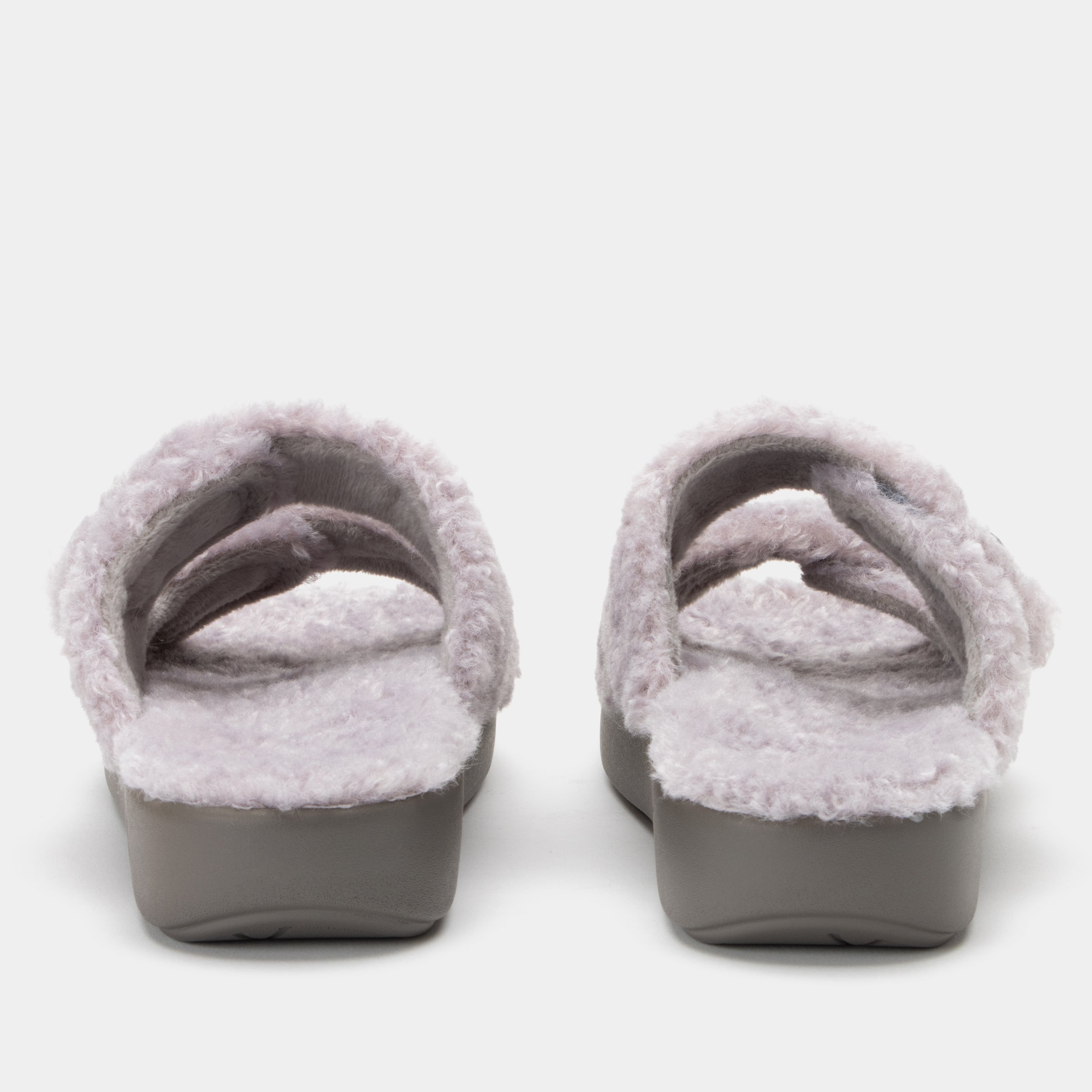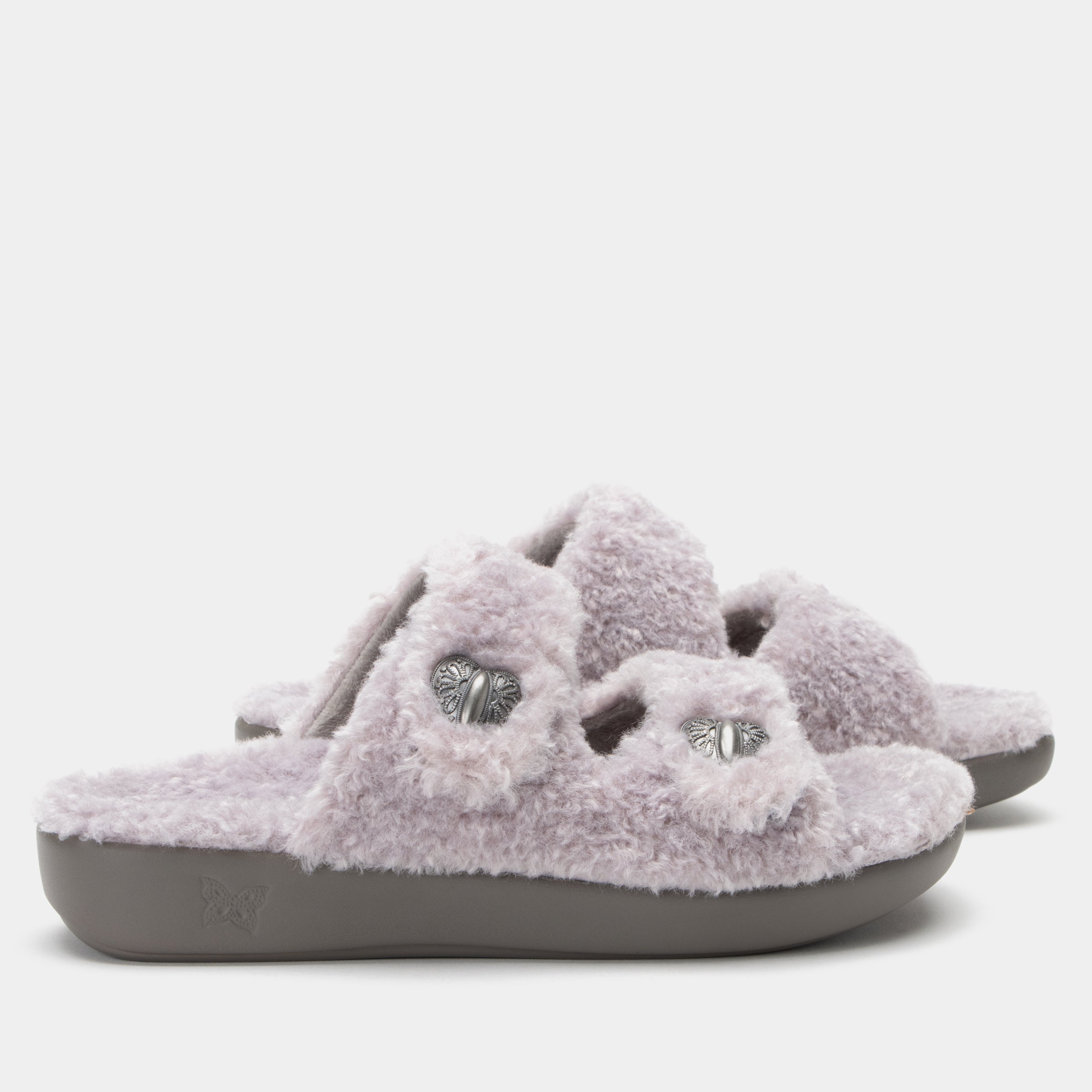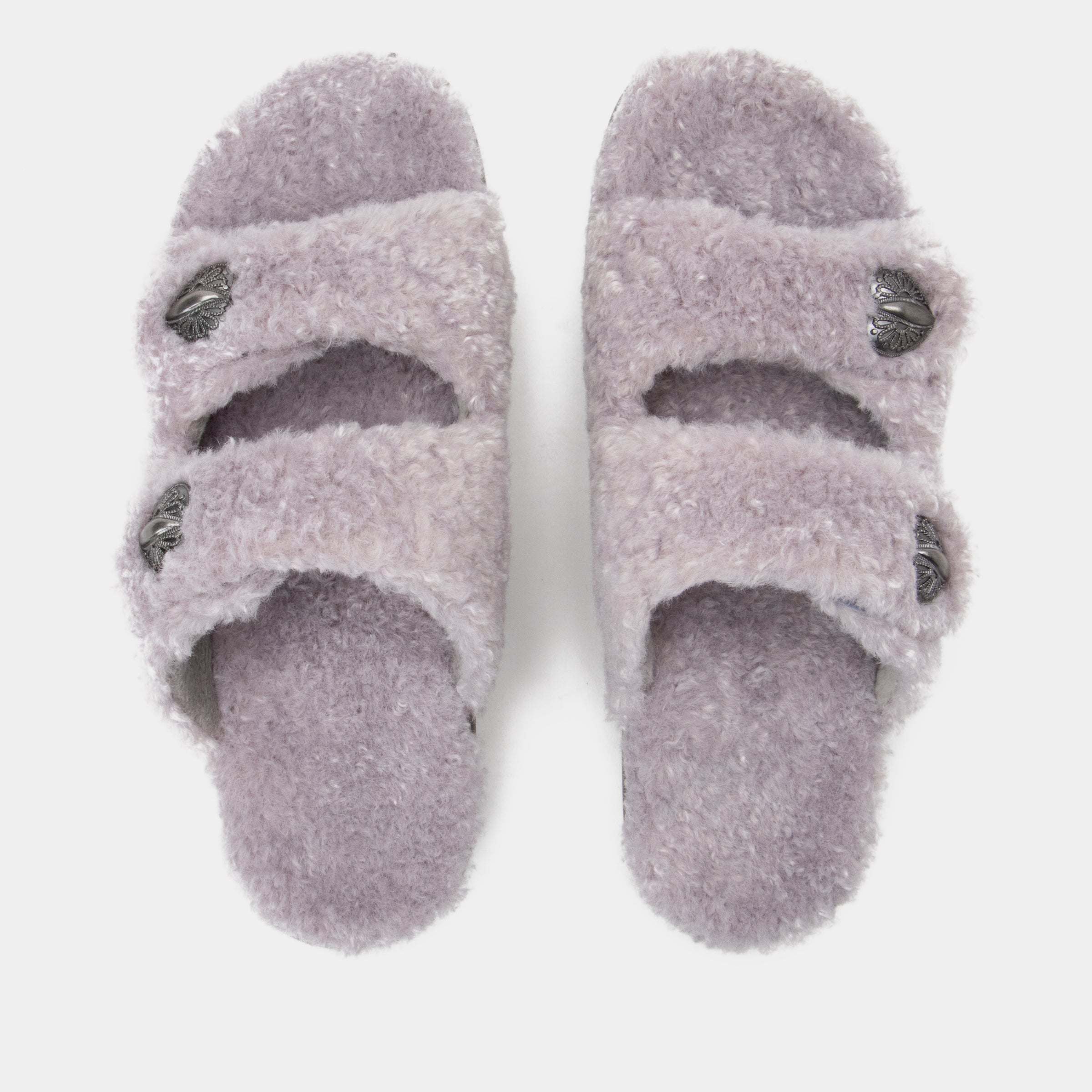 Chillery is a comfort slipper that is the most versatile with two hook-and-loop straps to give your foot a more customized fit. A plush sherpa upper, featured in Smoke, is adorned with decorative heart hardware for a quaint finishing touch.