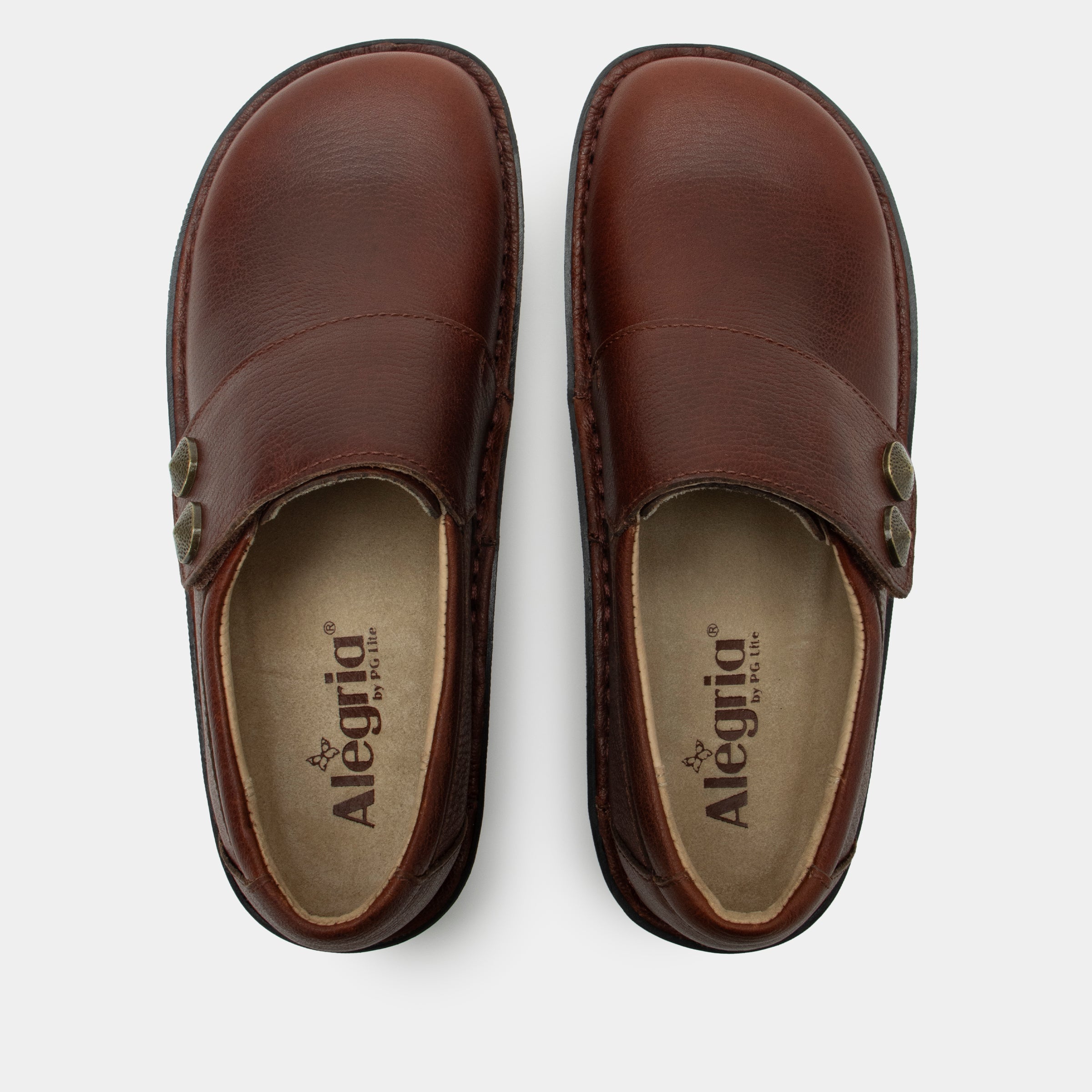Stay sure footed in this adjustable hook-and-loop strap leather casual shoe dressed up with decorative artisanal hardware. A gently padded collar and ergonomically designed removable footbed made of memory foam and cork enhances its wearability. Underneath it all is a slip-resistant classic rocker outsole for nine-to-five comfort.