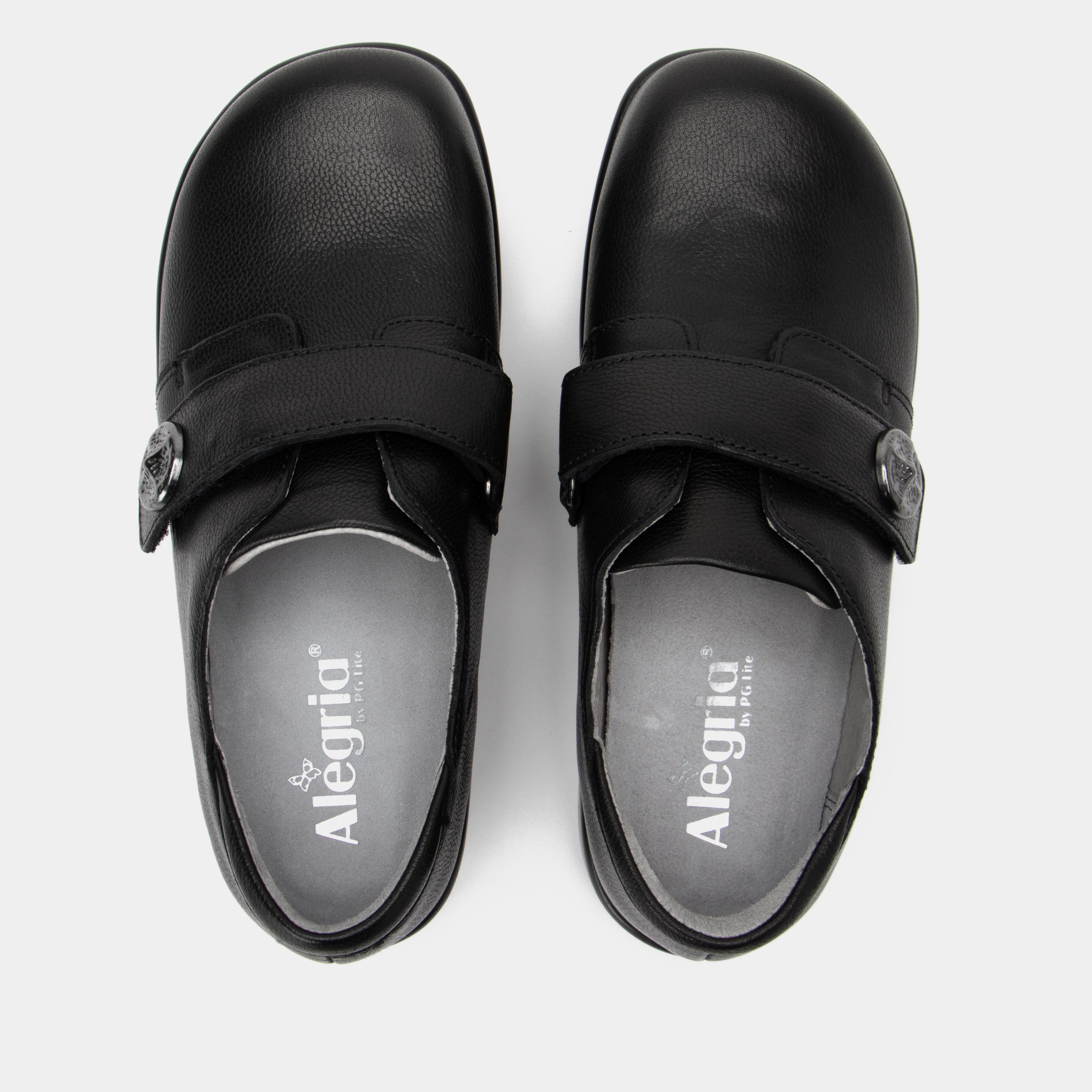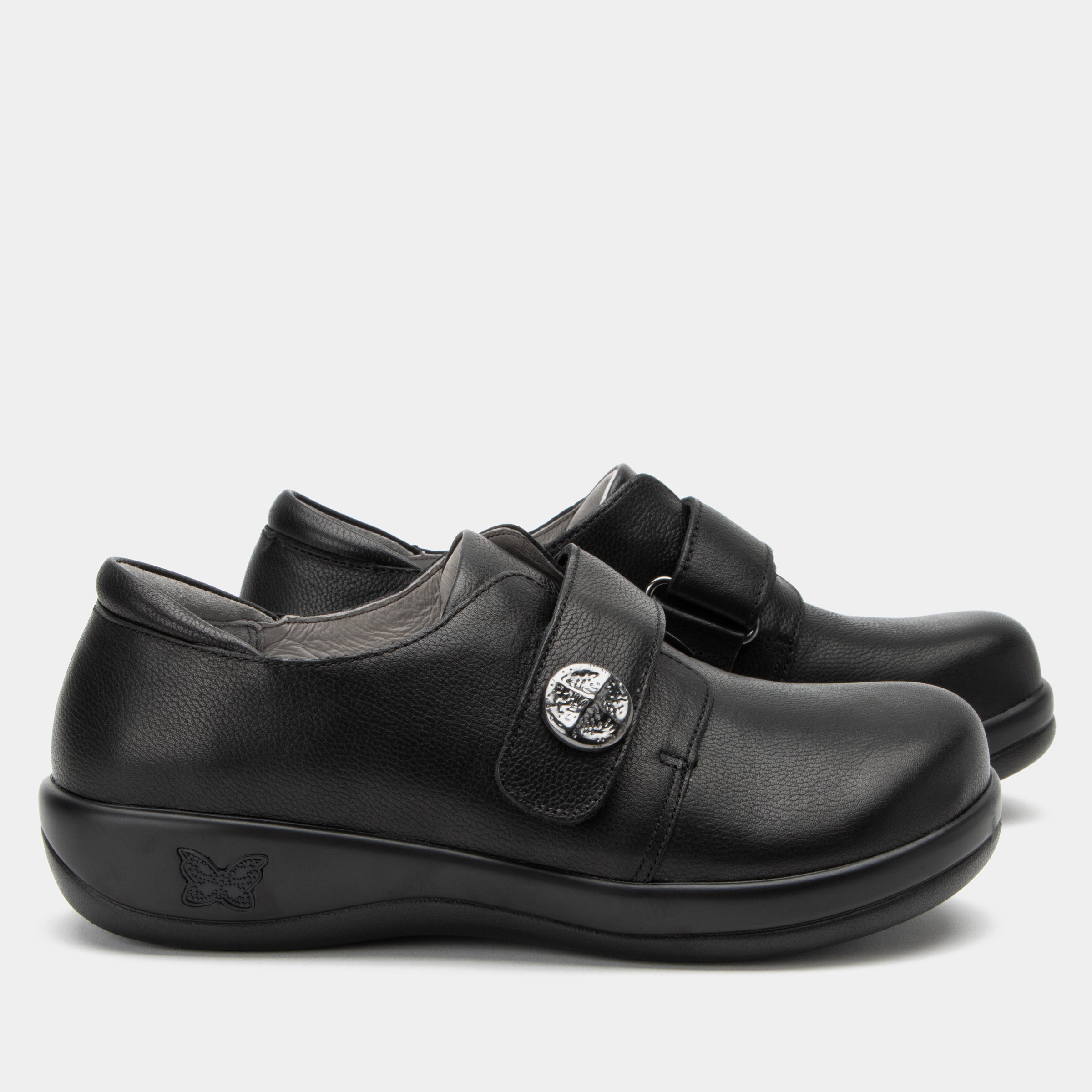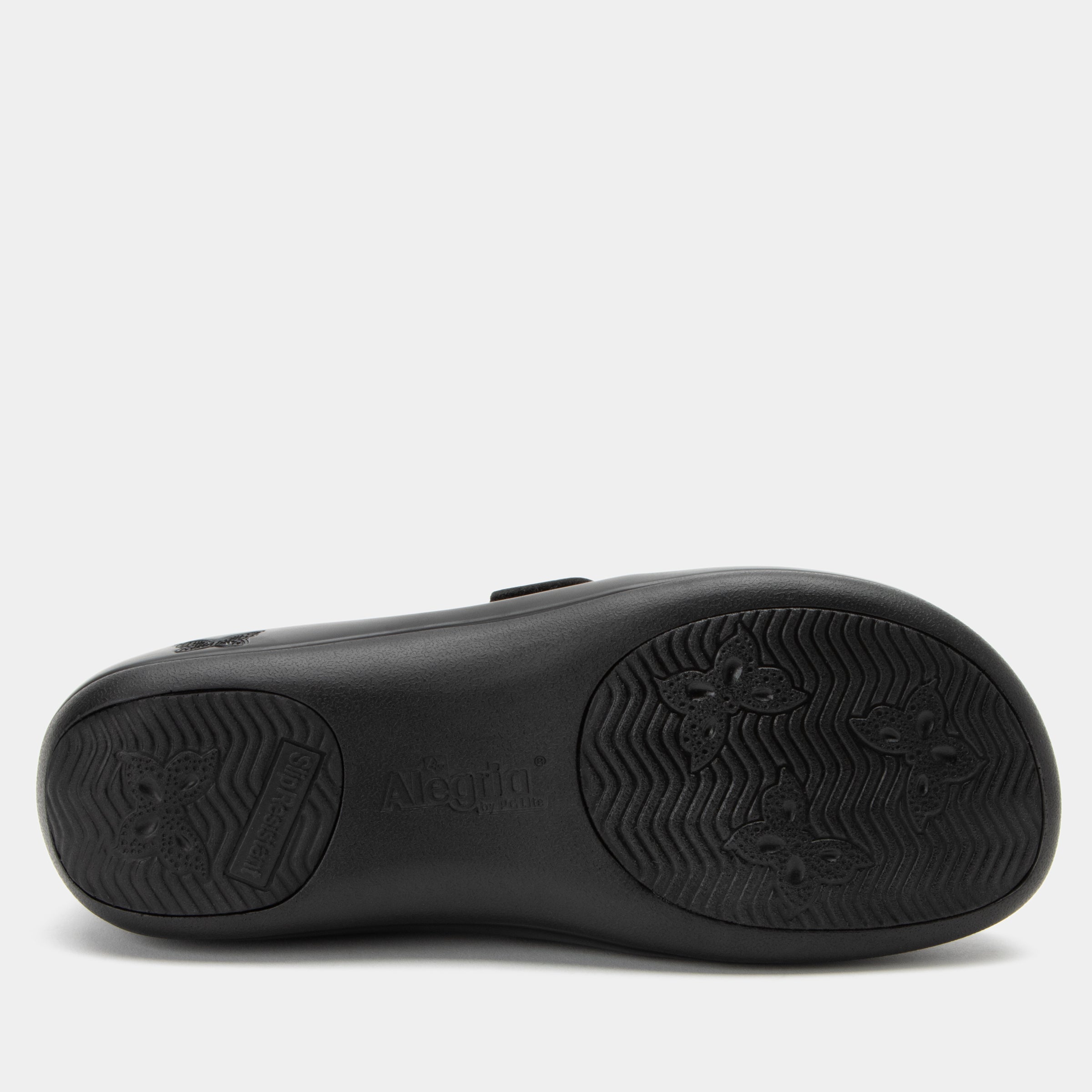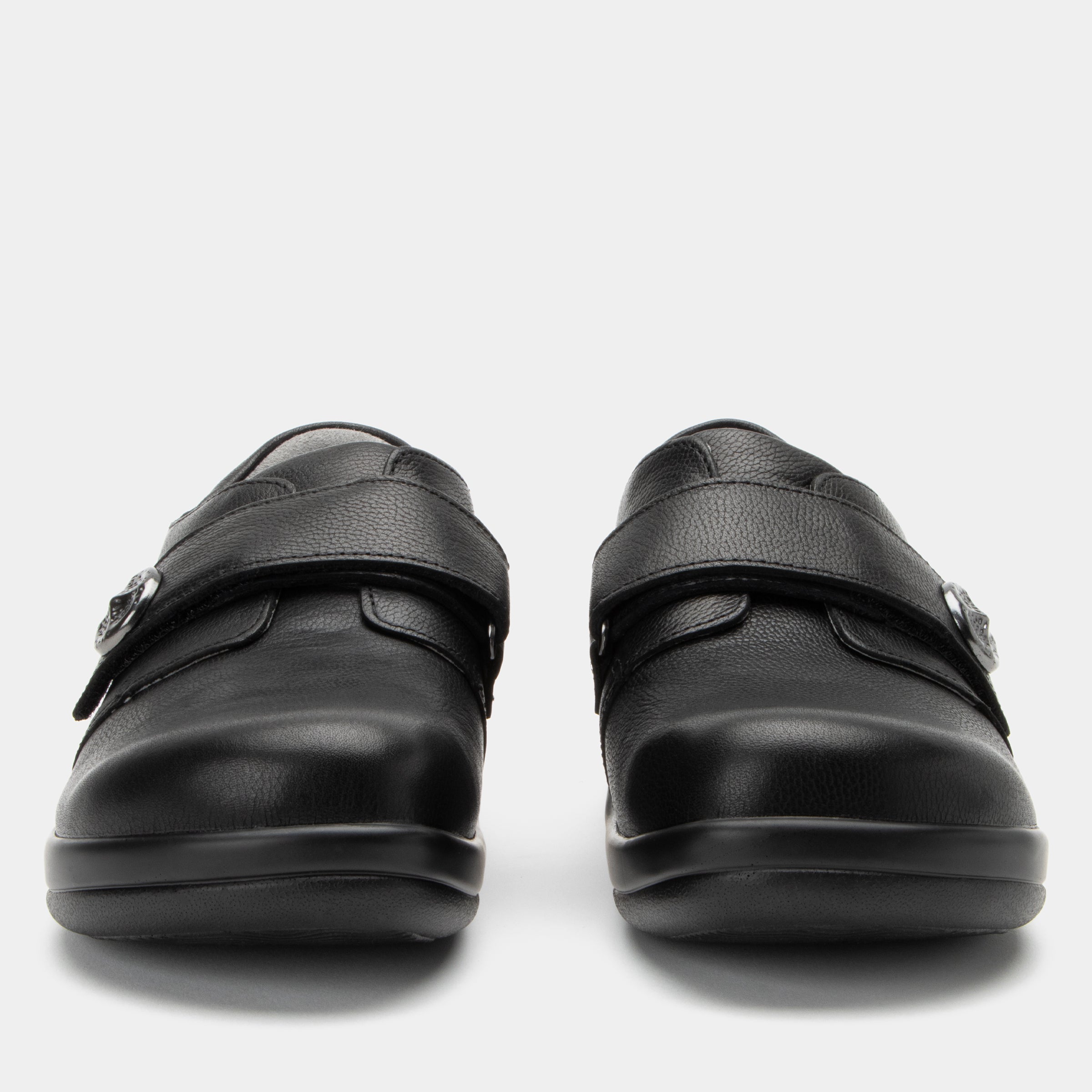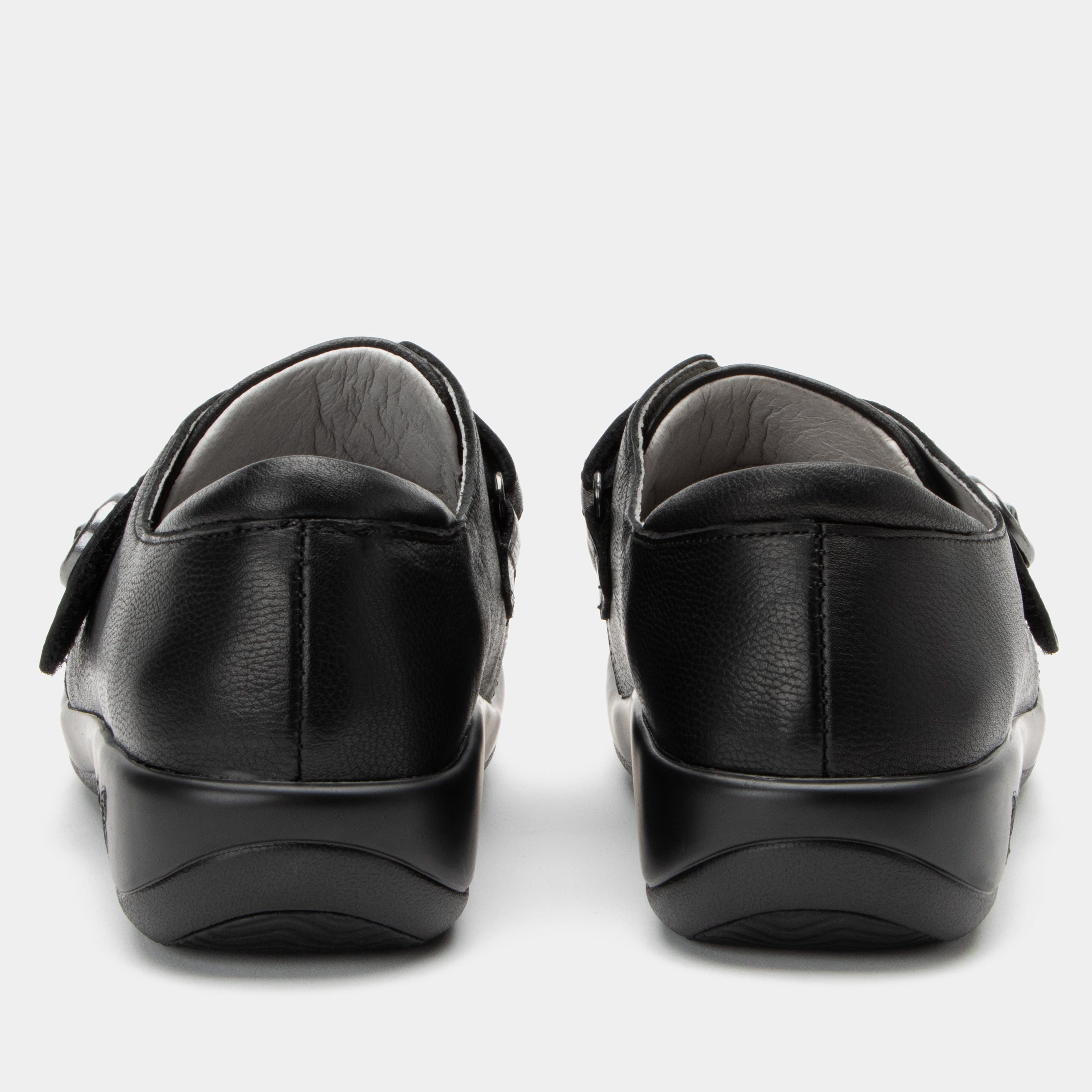 This style shown in an Upgrade Black genuine leather upper with unique strap ornamentation.
