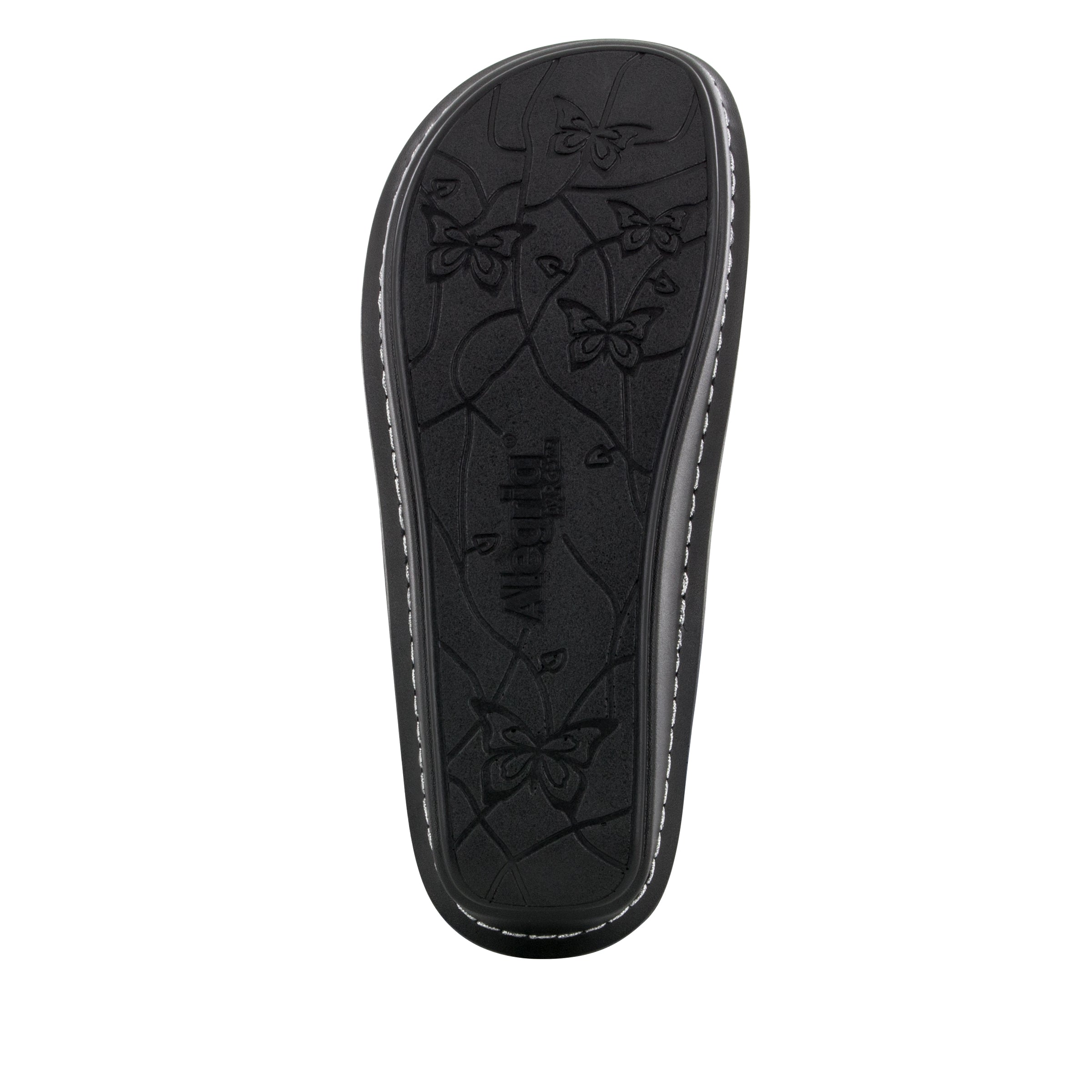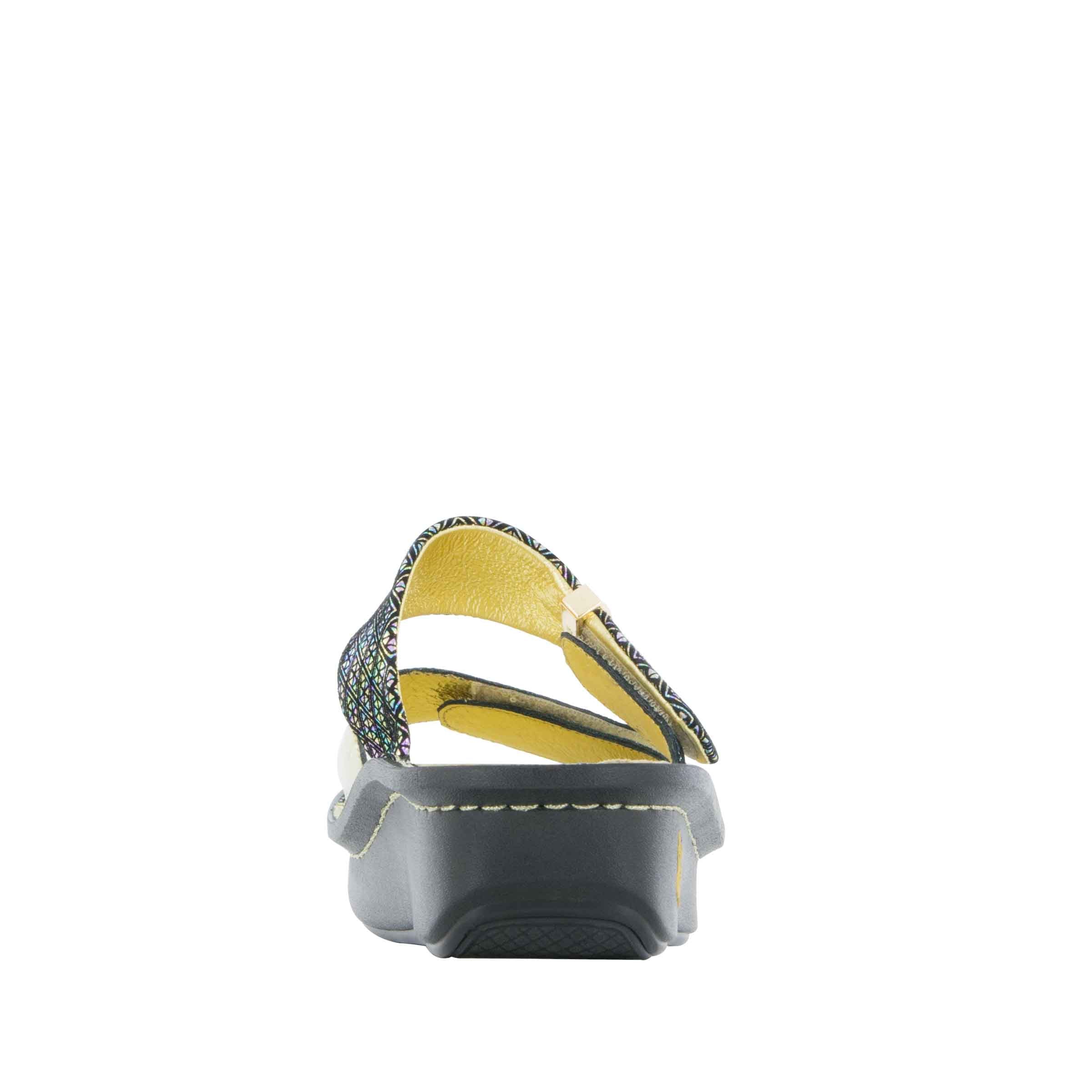 Traditional slide sandal designed in beautiful patterns for warm weather fun, featured in a fancy Diamonds Forever print leather.