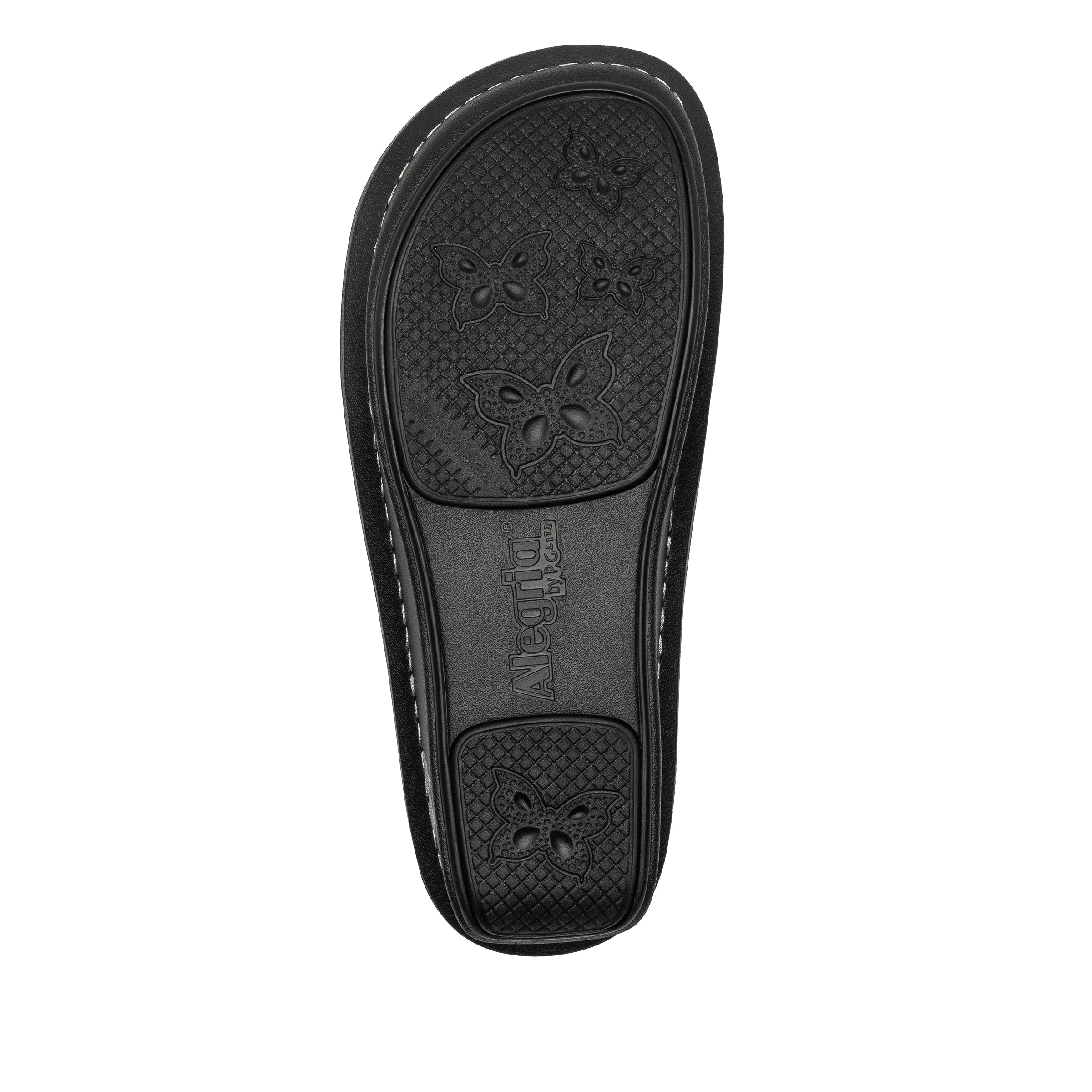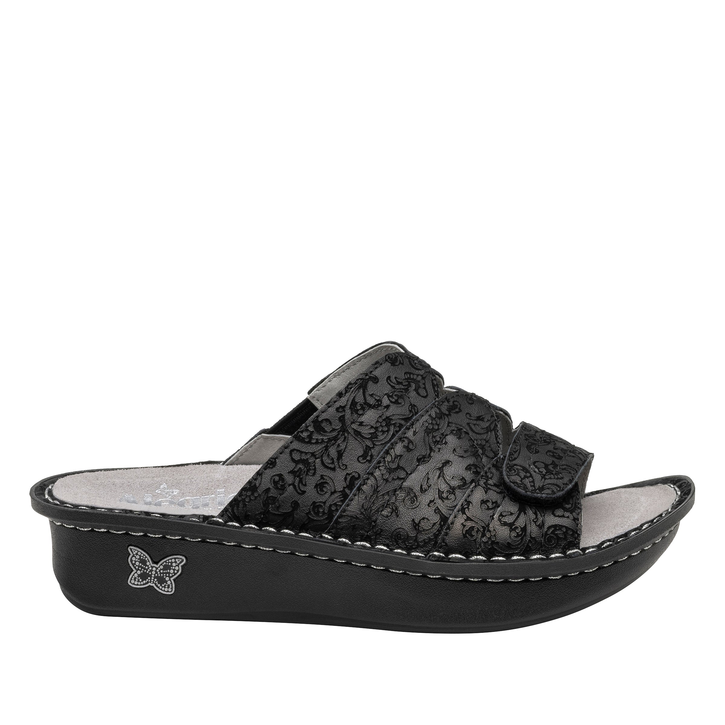 Slides rule in this Klara closed-up leather sandal designed with an integrated adjustable hook-and-loop strap and decorative geometric cutouts. It's finished with a removable memory foam and cork footbed and slip-resistant classic rocker outsole for walking ease.