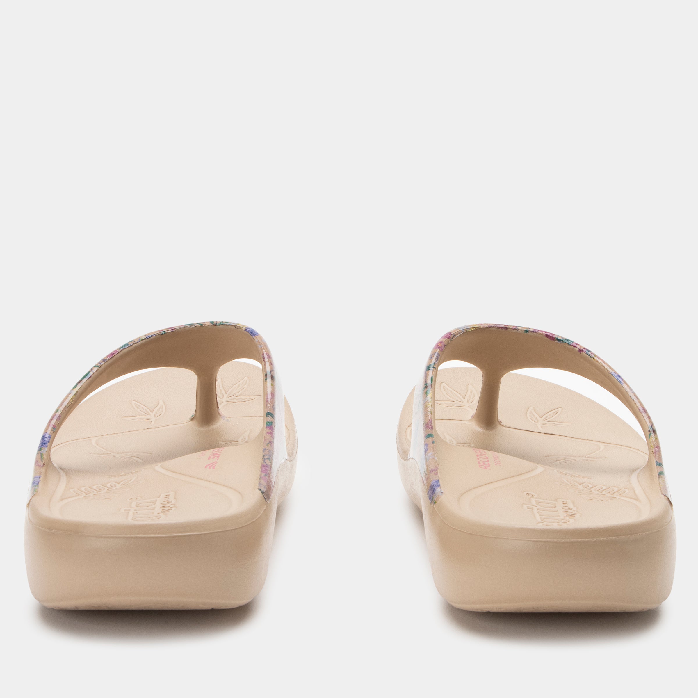 Step into Alegrias lightweight recovery flip-flop, your go to style for everyday comfort and port-workout support. Featuring RecoverMe™ technology, the Ode sandal sits on a soft rocker bottom that is ergonomically designed to the contours of the foot. Available in a fresh range of colors and prints that will make your feet happy indoors or outdoors.