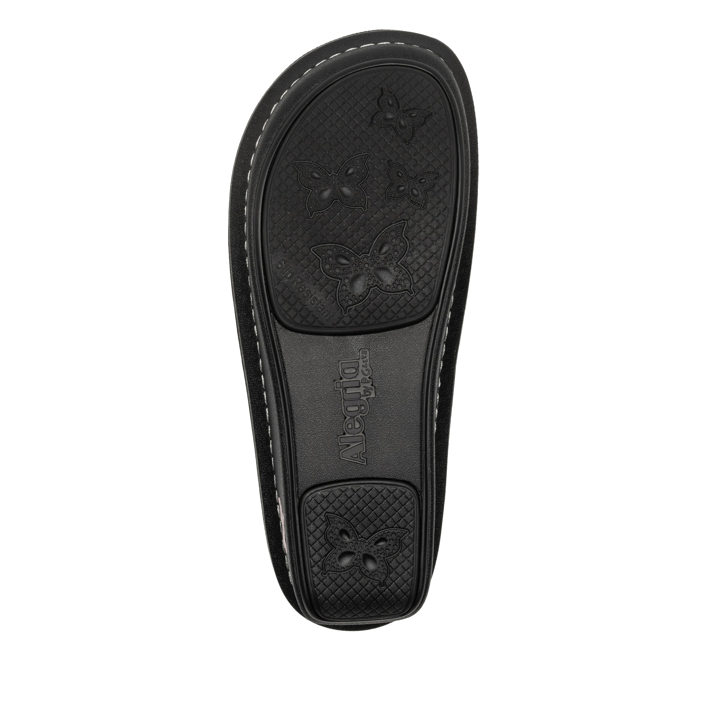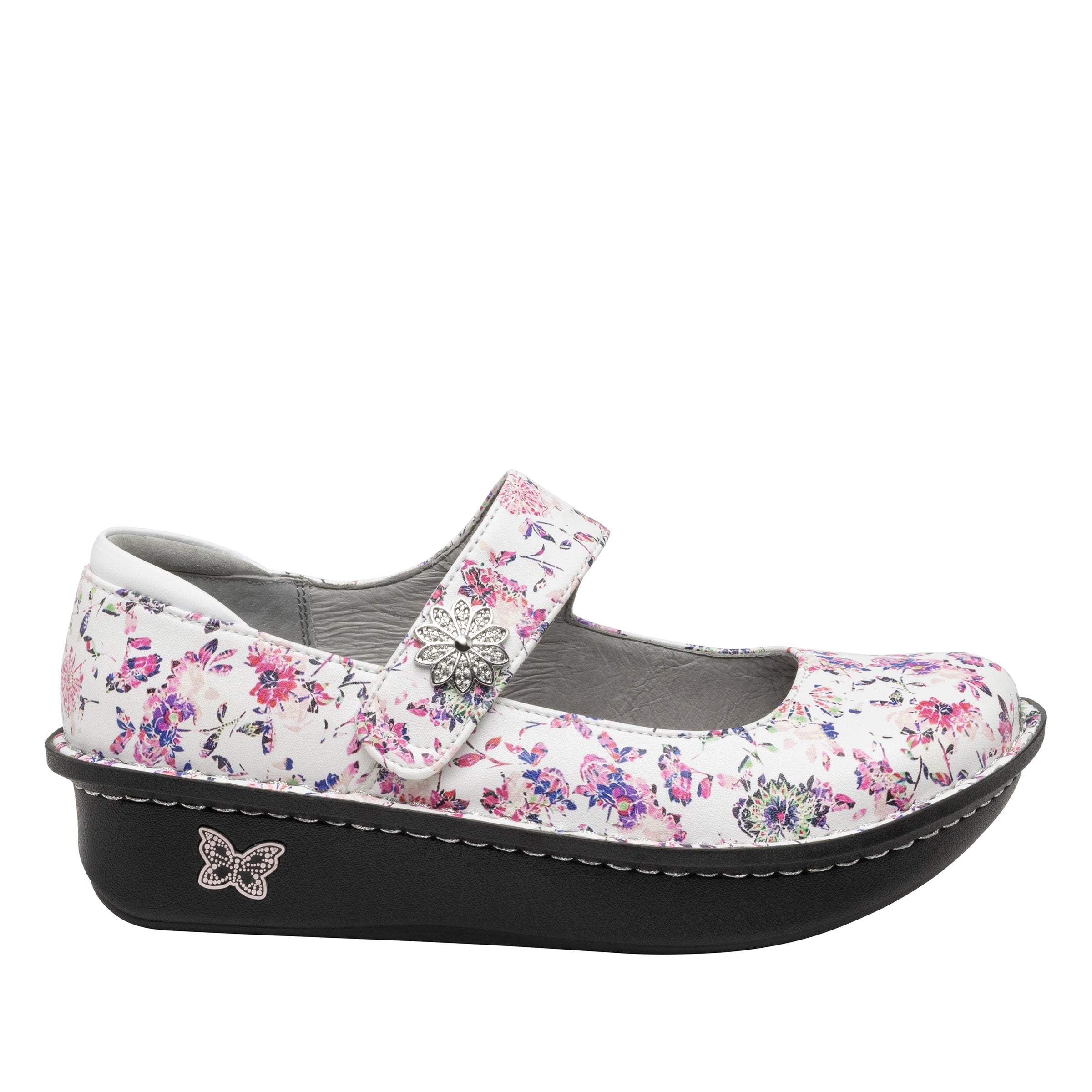 The popular Mary Jane features an adjustable hook-and-loop close strap, each adorned with its own unique ornament. For added comfort and support, it incorporates an ergonomically designed memory foam and cork footbed that's easily removable with a classic rocker outsole that creates a natural rolling motion when walking.