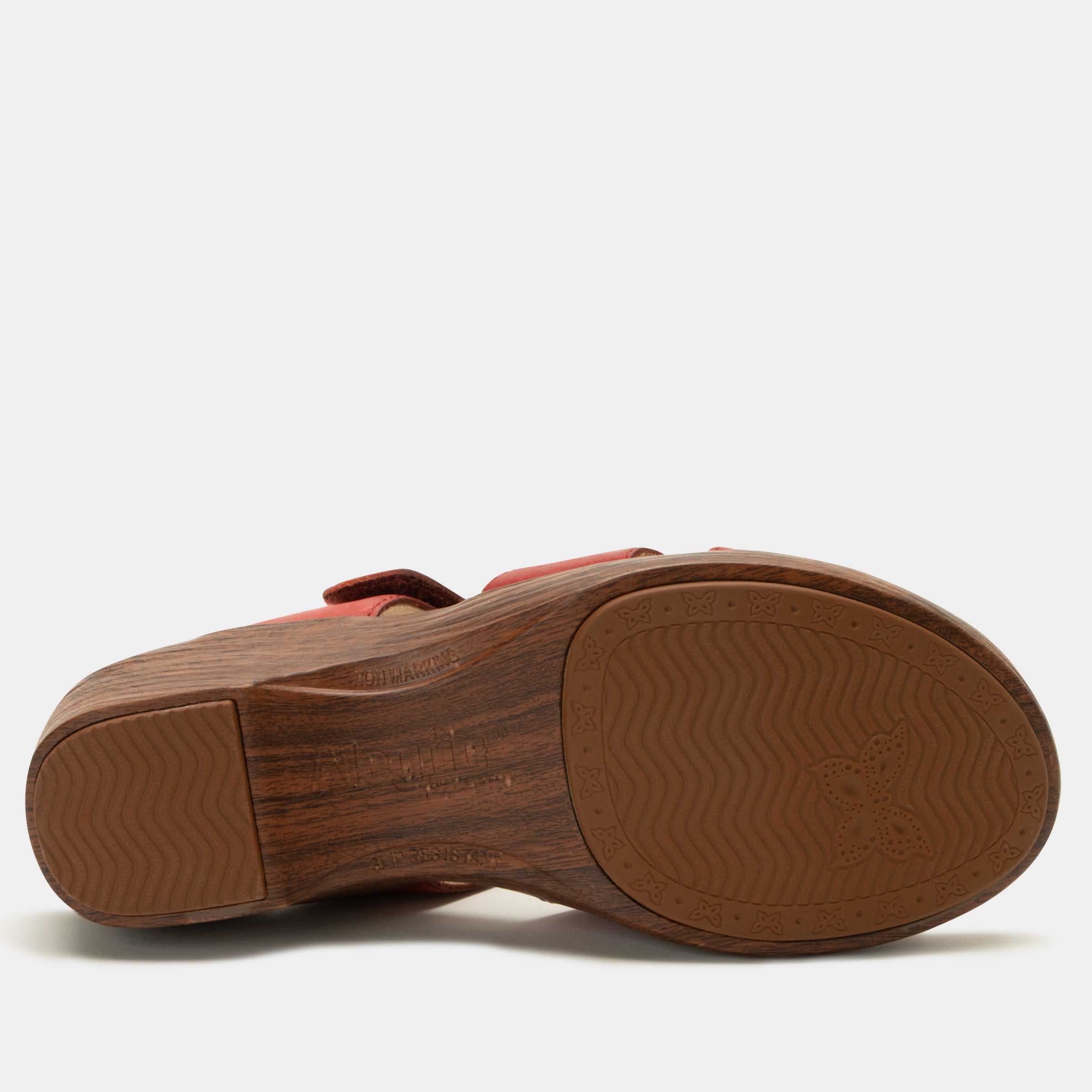From the office to cocktails at eight, this tailored leather slide incorporates an adjustable hook-and-loop close strap and molded memory foam and cork footbed for all-day comfort. The sophistication continues with a featherweight wood look wedge outsole.