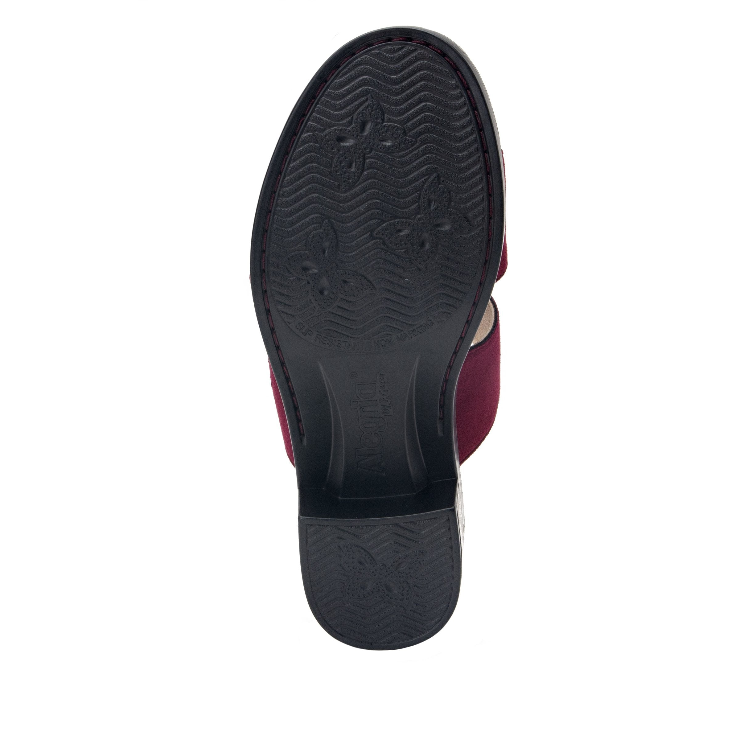 Featured in a richly colored Syrah microsuede upper with matching microsuede footbed, detailed with a contrast topstitch.