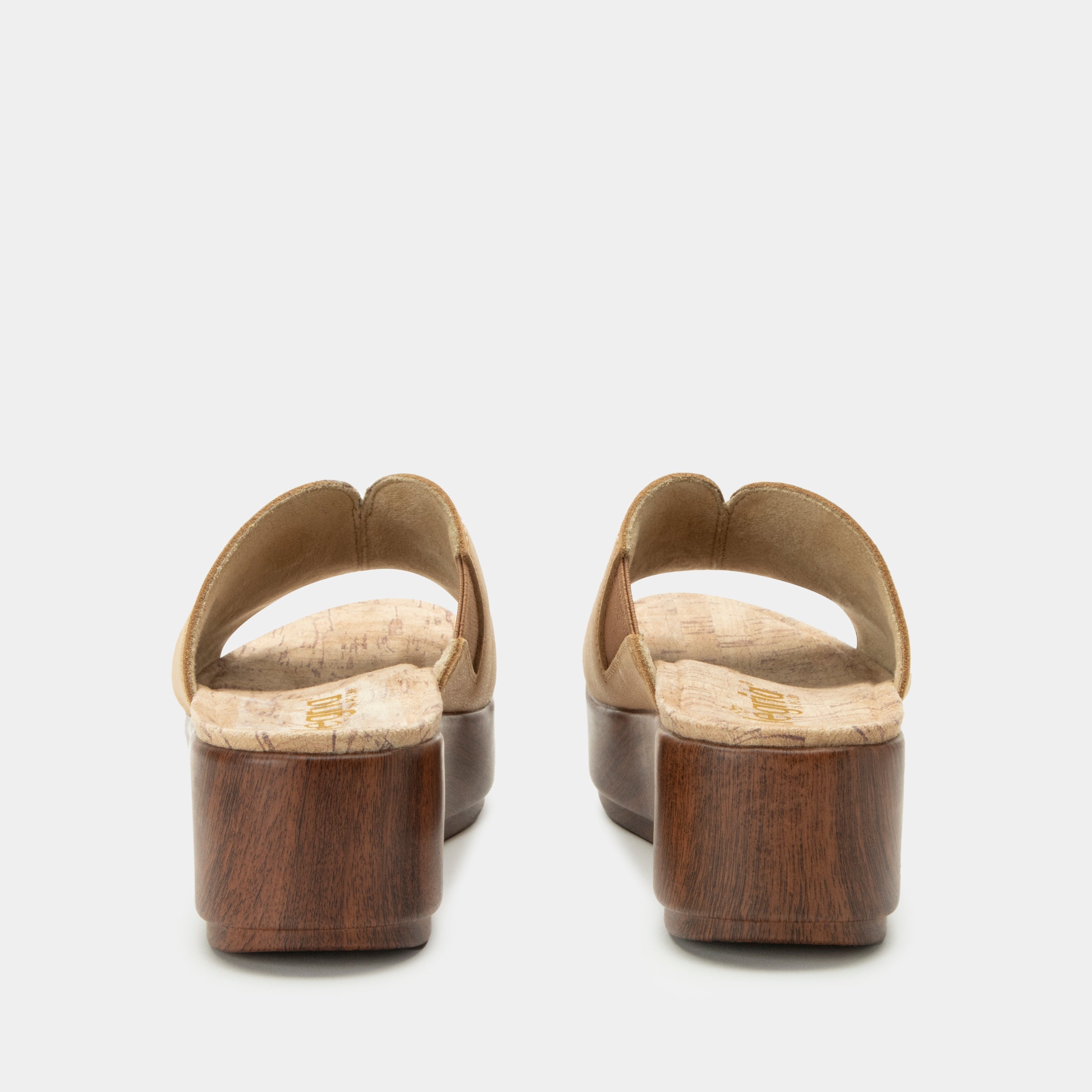 Revisit the '70s in this simple leather slide designed with hidden elastic goring and subtle 'V' cutout at the top line. The contoured footbed and lightweight comfort flatform outsole raises the bar on support and style. The microsuede covered footbed, has a soft hand-feel for durable stylish coverage and comfortable feel.