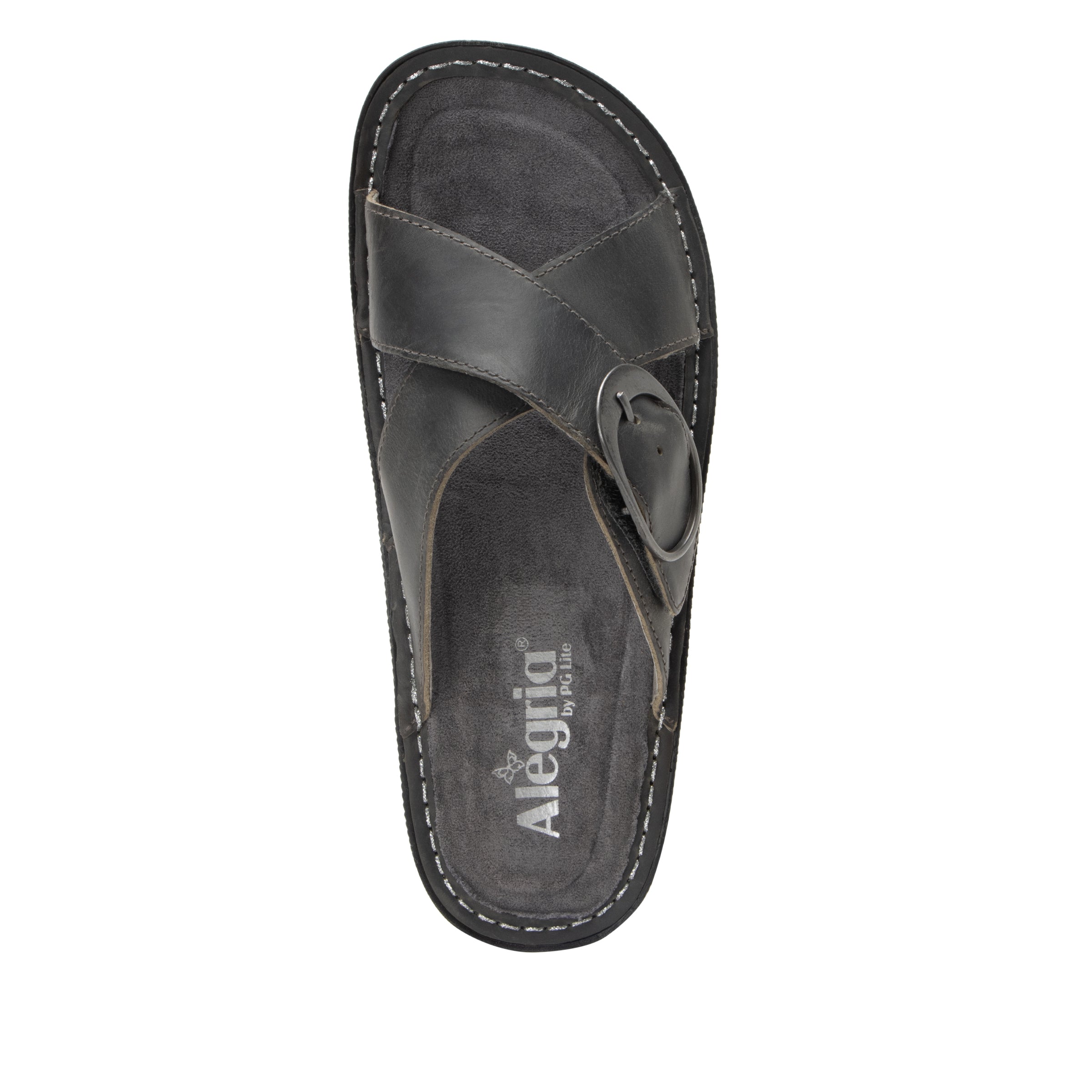 The classic crisscross sandal takes a bold step forward in this handstitched version with an ornamental buckle set on an adjustable hook-and-loop strap. A removable contoured footbed made of cork and memory foam, seamlessly fit into a mini outsole for walking ease. For added versatility, choose from uppers in textured calf hair or smooth leather.