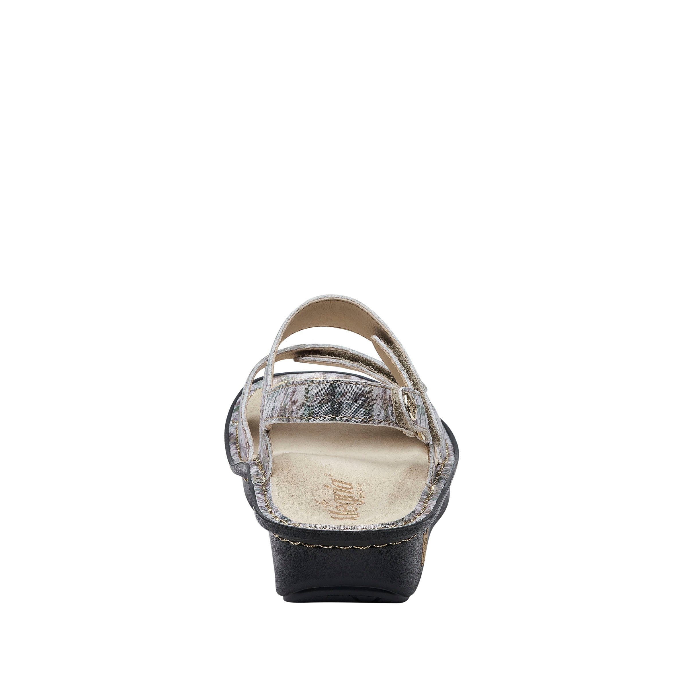 Featured in this outgoing Sassy Earth print on a genuine leather upper.